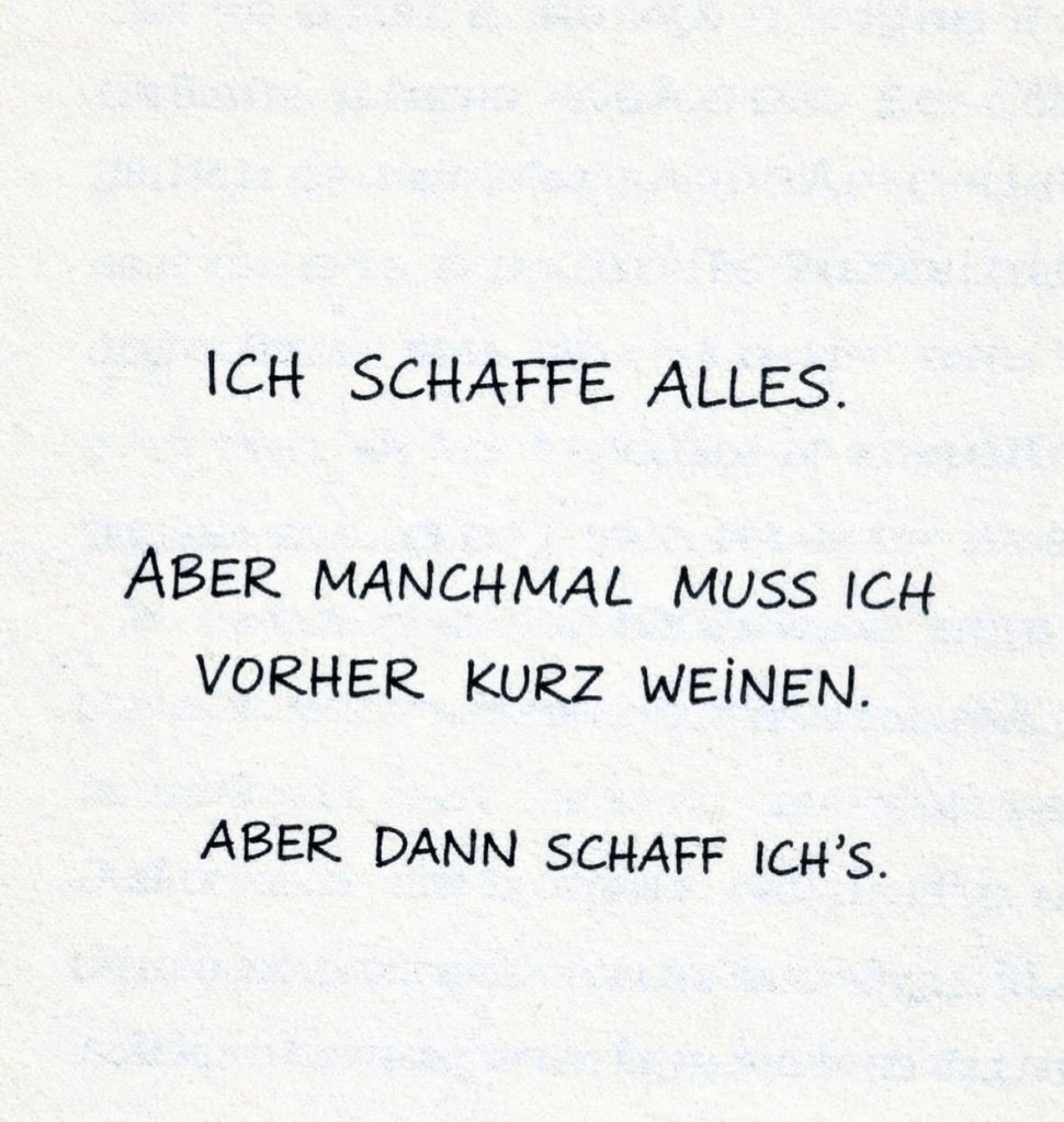 Jetzt bin ich in der Reha. Ich sitze im Rollstuhl oder klemme mir die Unterarmstützen unter die Ellebogen und schleppe mich voran. Das Bein brennt und schmerzt wie d’Sau (um in der Schweinefamilie zu bleiben). Jeder Schritt, jede stechende Muskelübung braucht bisweilen Überwindung. Auch von mir. Es gibt Momente da möchte ich einfach im Bett liegen und zaubern dass das alles vorbei ist. Dann sagen die Pflegenden oder Ärzte hier auch gerne: „Sie müssen sich auch ausruhen. Das gehört zur Heilung“. Wann kippt das Ausruhen in das Gehege des Schweinehunds und man steht nie mehr richtig auf?