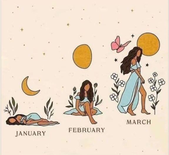 Und dann ist da auch noch… der Beginn des Frühlings, den wir gerade feiern können. Heute Abend wechselt die Jahreszeit vom kalten strengen Winter in den Frühling. Und jetzt haben wir eine ganz besonders schöne Energie. Einen Übergang von der erstarrten Kälte, die Strenge und zusammen gezogene Kraft und Konzentration ausmachte, in die leichte warme und tänzerische Energie des Neuanfangs.