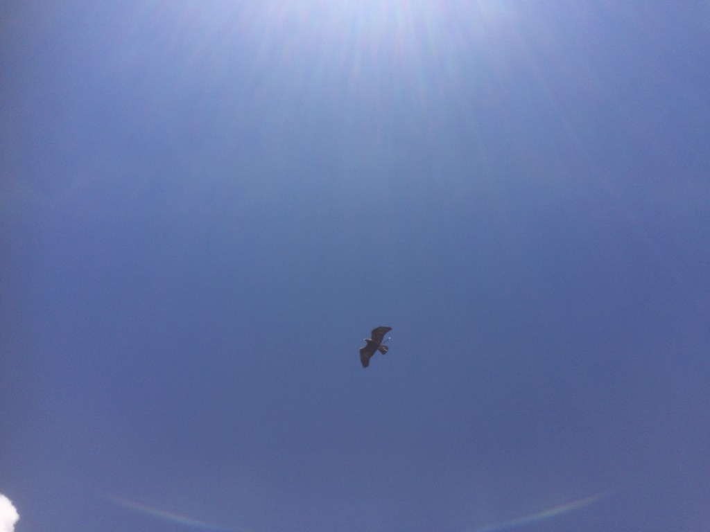 Die Vögel hier auf der Insel erwarten jeden Tag euphorisch und laut den neuen Tag. Dann erscheint die Sonne, sie stossen sich ab und segeln und feiern, dass es weiter geht.