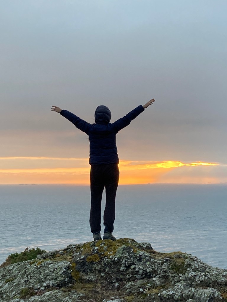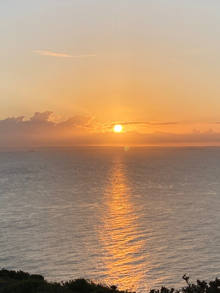 Hier auf Jersey ist das ein Schlüsselmoment. Am Tag nach der harten Arbeit stehen wir eine halbe Stunde vor dem Sonnenaufgang auf, fahren mit dem Auto in den Osten der Insel, setzen uns dort auf eine Klippe und beobachten, wie sich der Feuerball an den Himmel hebt. Während der Phase, in der die Sonne die Wolken durchdringt und erscheint, schreien die Möwen besonders laut. Auch die anderen Vögel stimmen in eine Art Motivationsgeschrei ein. Dann dringt der erste Strahl durch und das Glitzern auf dem Meer beginnt. Plötzlich ist Stille. Die Vögel scheinen andächtig lauschend auf ihren Bäumen und Felsen zu sitzen und den Moment zu umarmen. Das neue Leben, der neue Tag beginnt.